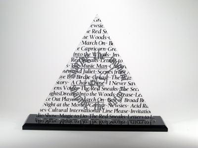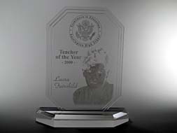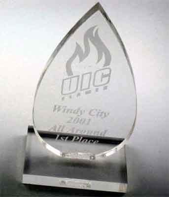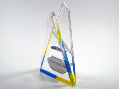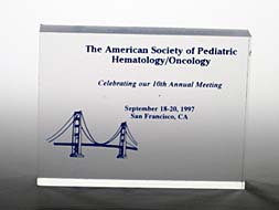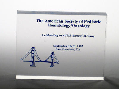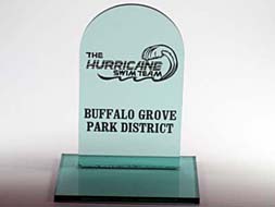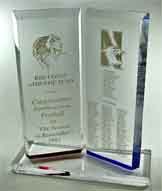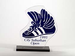 Sample Custom Acrylic Awards and TrophiesMade in the shape and silk-screen printed or engraved with the graphic and text our clients designed. |