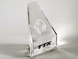 Sample Custom Acrylic GiftwareMade in the shape and silk-screen printed with the graphic and text our clients designed. |
