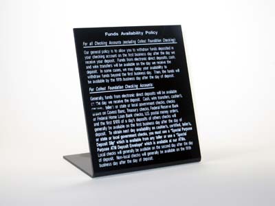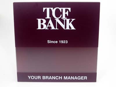 Sample Custom Acrylic SignageMade in the shape and silk-screen printed or engraved with the graphic and text our clients designed. |